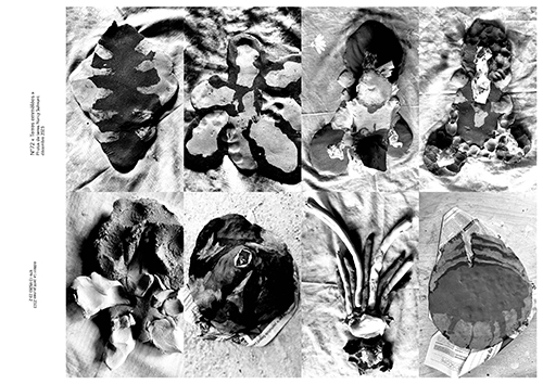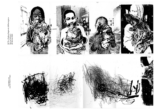 texte/image. Différentes approches et apparitions graphiques fusionnées et sublimées par l’impression noir et blanc comme dans un journal où chacun peut y trouver ce qu’ielle n’y cherche pas… Nancy Sulmont.