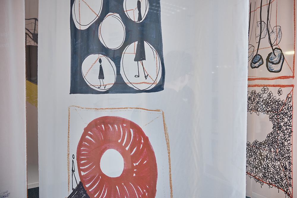 Elle porte son attention tout particulièrement sur ces processus d’immersion et d’accueil des spectateurs dans un lieu : le parking, la signalétique ou les toilettes ont autant d’importance que l’évènement ou l’exposition qui se joue.