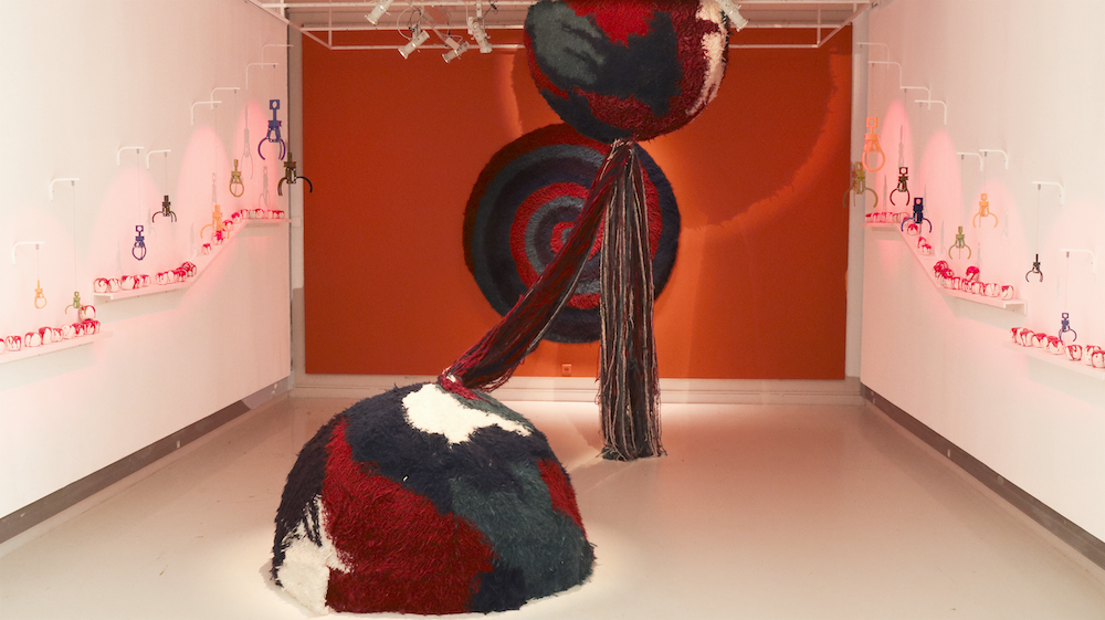 "Se voulant à la fois décomplexée et régressive, cette installation joue avec les symboles clinquants de l’univers forain. Je cherche à modifier la perception de celui-ci en faisant appel à l’inconscient collectif. Le déplacement de ces éléments de la culture populaire est à la fois sensible par les médiums utilisés, tel que la céramique ou le textile, mais aussi conceptuel par la migration de pratique populaire dans un environnement artistique."